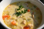 4. Note: If a thicker chowder is desired, add -- 1 tablespoon cornstarch dissolved in 2 tablespoons of cold water. Also, smash a few potatoes for thickening.